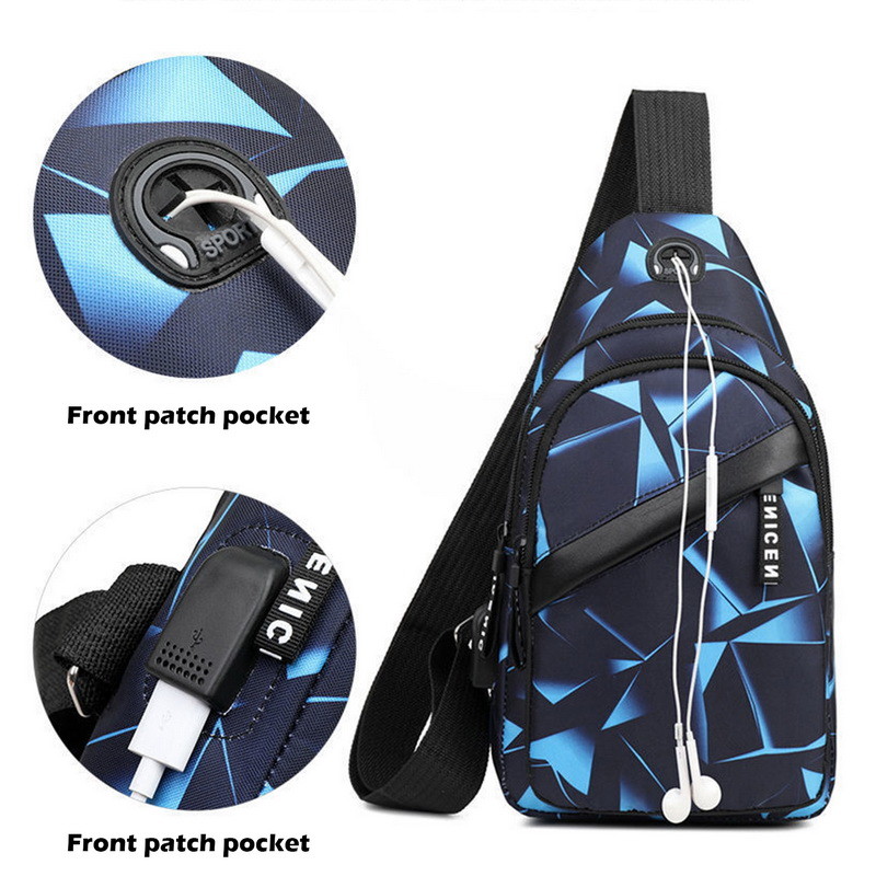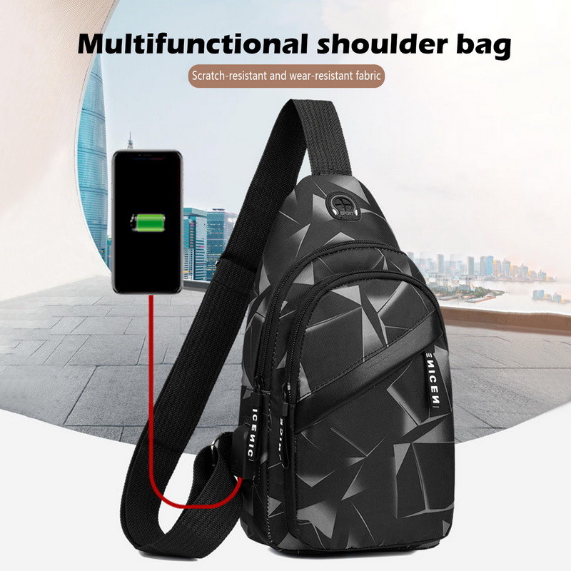 کیف قفسه سینه مردانه ضد سرقت کیفهای شانهای کوتاه سفر کوتاه کیفهای مسنجر بسته چرمی مردانه بسته زنجیر بادی شارژ USB.